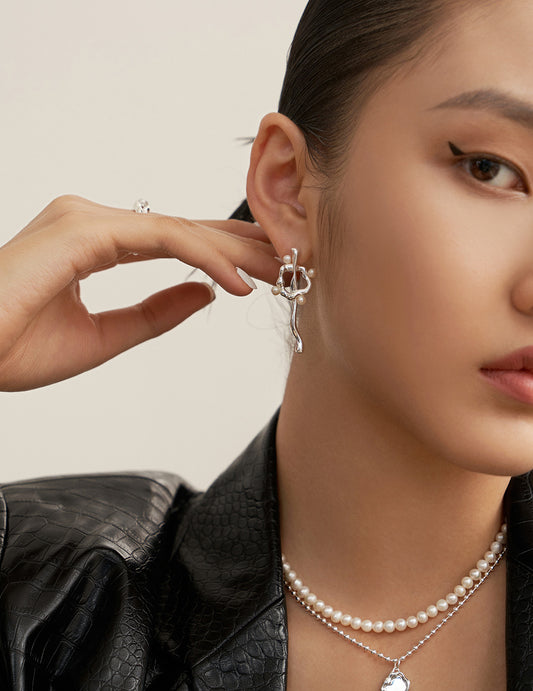 Lava Asymmetrical Sculptural Pearl Earrings
