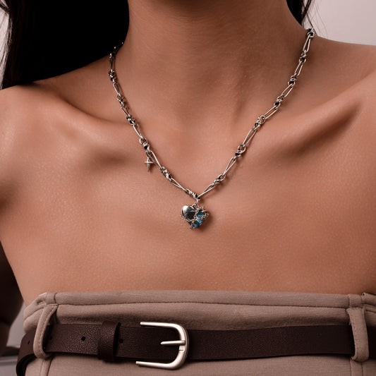 Deia Iced Heart Textured Chain Necklace